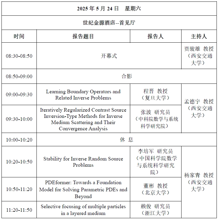 反问题作为一种广泛应用的理论框架,它的重要性和影响力不断被越来越多的研究者和实践者所认识和关注。另一方面,近年来,机器学习不断取得了突破性的进步,无论在理论研究还是应用实践中,它都已经成为了应用数学领域内不可或缺的重要组成部分。同时,我们也注意到,在反问题和机器学习两个领域的交叉研究中,已经出现了许多引人注目的成果。这些创新的研究为我们打开了全新的视角和思考方式,它们不仅带来了新的理论洞察,也推动了实际应用的发展。为进一步推动这两个领域的交叉合作,兹定于2025年5月23--25日举办“反问题与机器学习联合研讨会”。