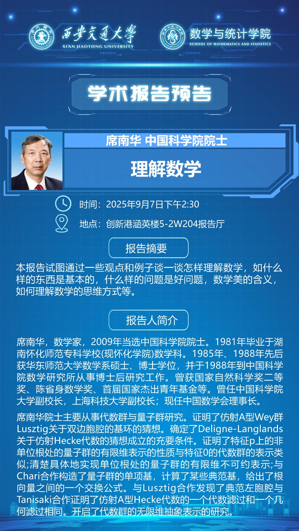 中国科学院院士席南华学术报告通知