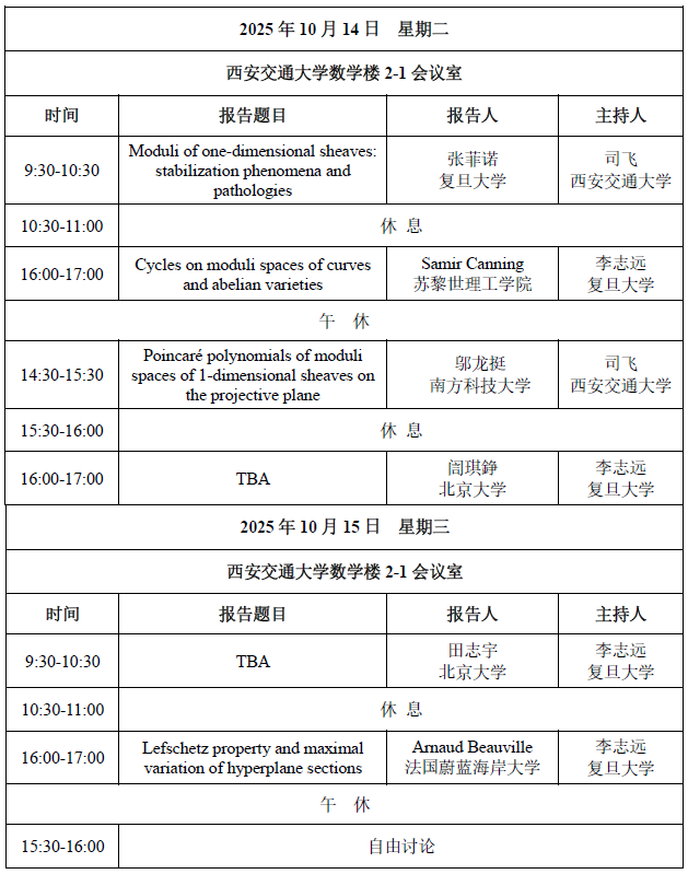 模空间与双有理几何的研究近年来已成为代数几何领域学术研究热点与前沿问题。本次国际会议旨在深入探讨模空间理论与双有理几何的交叉领域,聚焦代数几何分类问题的前沿进展。会议主题涵盖高维模空间的构造与紧化、极小模型纲领(MMP)的新应用、K-稳定性与法诺簇的分类、向量丛与模空间几何的关联,枚举几何与数学物理中的不变量,以及双有理不变量与奇点理论的计算方法。会议将重点关注霍奇理论、导出范畴与模空间理论的融合,以及几何不变量在数学物理中的新启示。